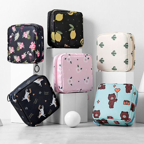 Cartoon Lipstick Design Sanitary Napkin Storage Bag Small Zip Lock Cosmetic Case for Girls School Period Pad Storage Pouch